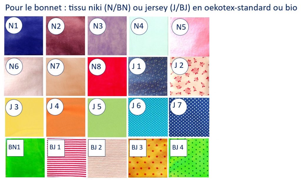 Le kit de couture pour 1 poupée contient 2 patrons, un DinA4 livret d’accompagnement non relié, 18 pages + 2 pages patrons, avec des instructions détaillées, étape par étape avec 79 images, 1x tissu Niki (80% coton, 20% polyester) ou jersey (95% coton, 5% élasthanne) pour le corps et le bonnet à choisir entre 15 tissus ; le tissu tubulaire (100% coton), 1x tricot pour le visage et les mains (100% coton), laine de mouton pour la tête et les mains, fil à broder pour les yeux et la bouche, rembourrage fibre de maïs.