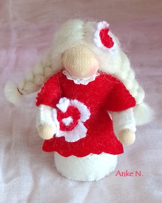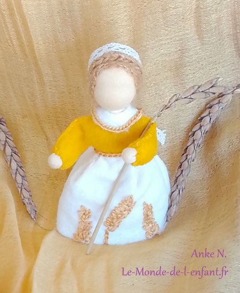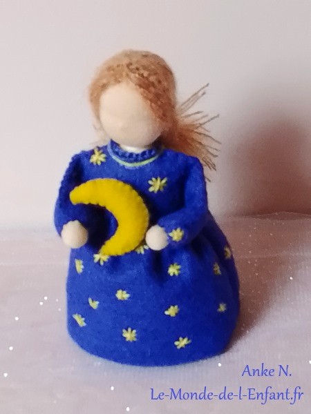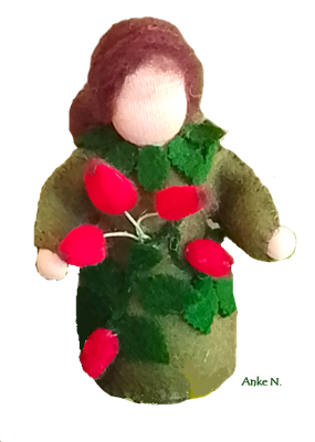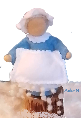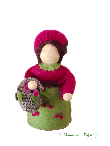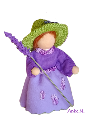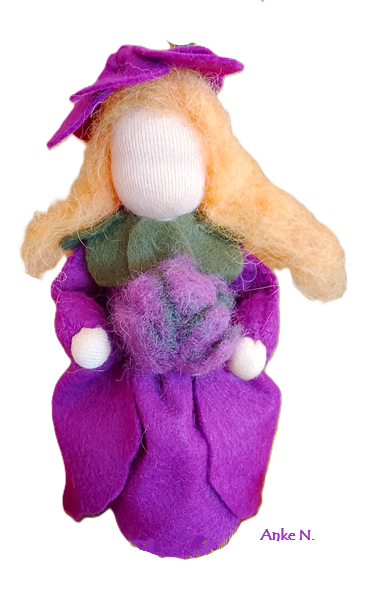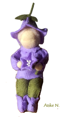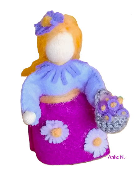 Il s’agit des de petites figurines en feutrine, entièrement faites à la main, qui évoquent les êtres de la nature. Elles peuvent servir de décoration, par exemple sur une Table de la Nature ou Table des Saisons. Les adultes, peuvent les utiliser également pour animer des spectacles de marionnettes. Taille: env. 12 à 14 cm. Matériaux : feutrine de laine et tricot en qualité bio. Remplissage : laine de mouton sans mulesing et quelques fleurs de lavande. Cheveux en mohair ou laine peignée.