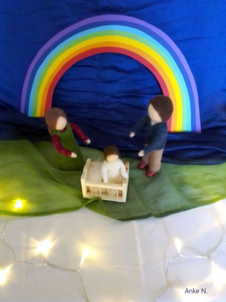 Petit théâtre de marionnettes pour la maternelle et les crèches. Accompagné de chansons, de musique de harpe, éventuellement d’une chanson gestuelle, de jeux de doigts. Le contenu des pièces de théâtre est adapté aux thèmes de la saison. Je joue avec des figurines que j’ai moi- même créées.